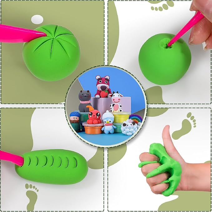 Perfect for crafting play clay, modeling clay, and magic clay creations, this soft clay is easy to shape and mold. Whether it’s for DIY clay projects or creating vibrant foam clay figures, this air-drying clay set requires no baking – it air-dries to a durable finish, making it hassle-free for kids to enjoy crafting on their own. Light clay, foam clay, and even air plasticine – the possibilities are endless with this versatile set!