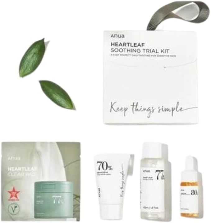 Experience the essence of Korean skincare with the Anua Heartleaf Smoothing Trial Kit, a travel-sized gift set curated for radiant skin. Unveil the magic of the Heartleaf 77 Clear Pad, designed to gently exfoliate and purify, followed by the Heartleaf 77% Smoothing Toner for a refreshing burst of hydration. Elevate your routine with the Daily Lotion, a lightweight moisturizer that keeps your skin supple throughout the day. Embrace the transformative power of the Heartleaf 80 Moisture Soothing Ampoule, delivering intense hydration for a radiant and smooth complexion. This kit is your passport to the world of K-beauty, promising a delightful journey towards healthier, glowing skin.
