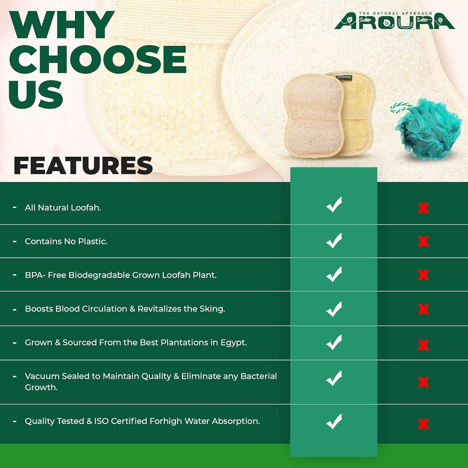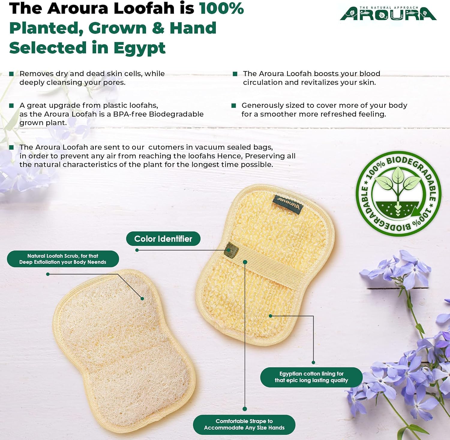 Aroura Natural Egyptian Loofah - Palm size Oval, Each Loofa is Planted, Grown & Hand Selected from Egypt. A Luffa For Your Entire Body, 4"X6 (Oval, 1 piece)