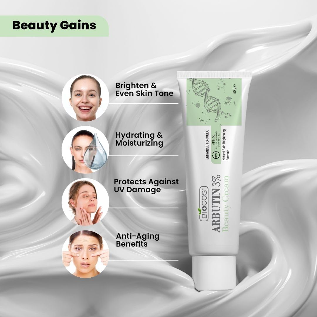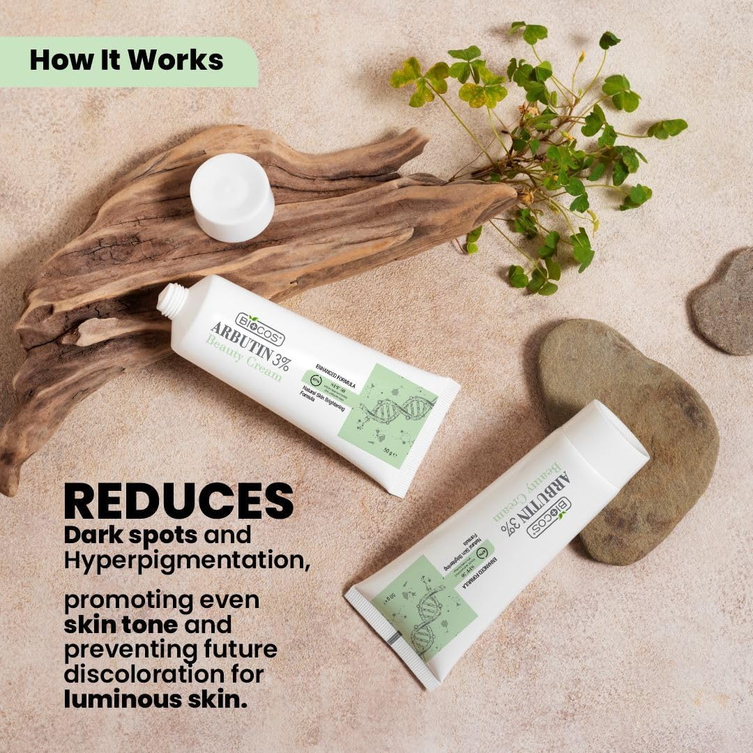 ✔ 𝗗𝗮𝗿𝗸 𝗦𝗽𝗼𝘁 𝗧𝗿𝗲𝗮𝘁𝗺𝗲𝗻𝘁: With 3% Arbutin, this beauty cream effectively targets and fades dark spots, hyperpigmentation, and uneven skin tone for a smoother, more radiant complexion.