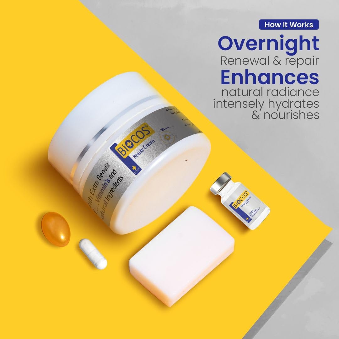 BIOCOS Brightening & Hydrating Face Cream Enriched with Glutathione, Kojic Acid, Arbutin, Vitamin E & B5 – Powerful Dark Spot Corrector & Moisturizer for Radiant, Even-Toned, Smooth Skin – 50g