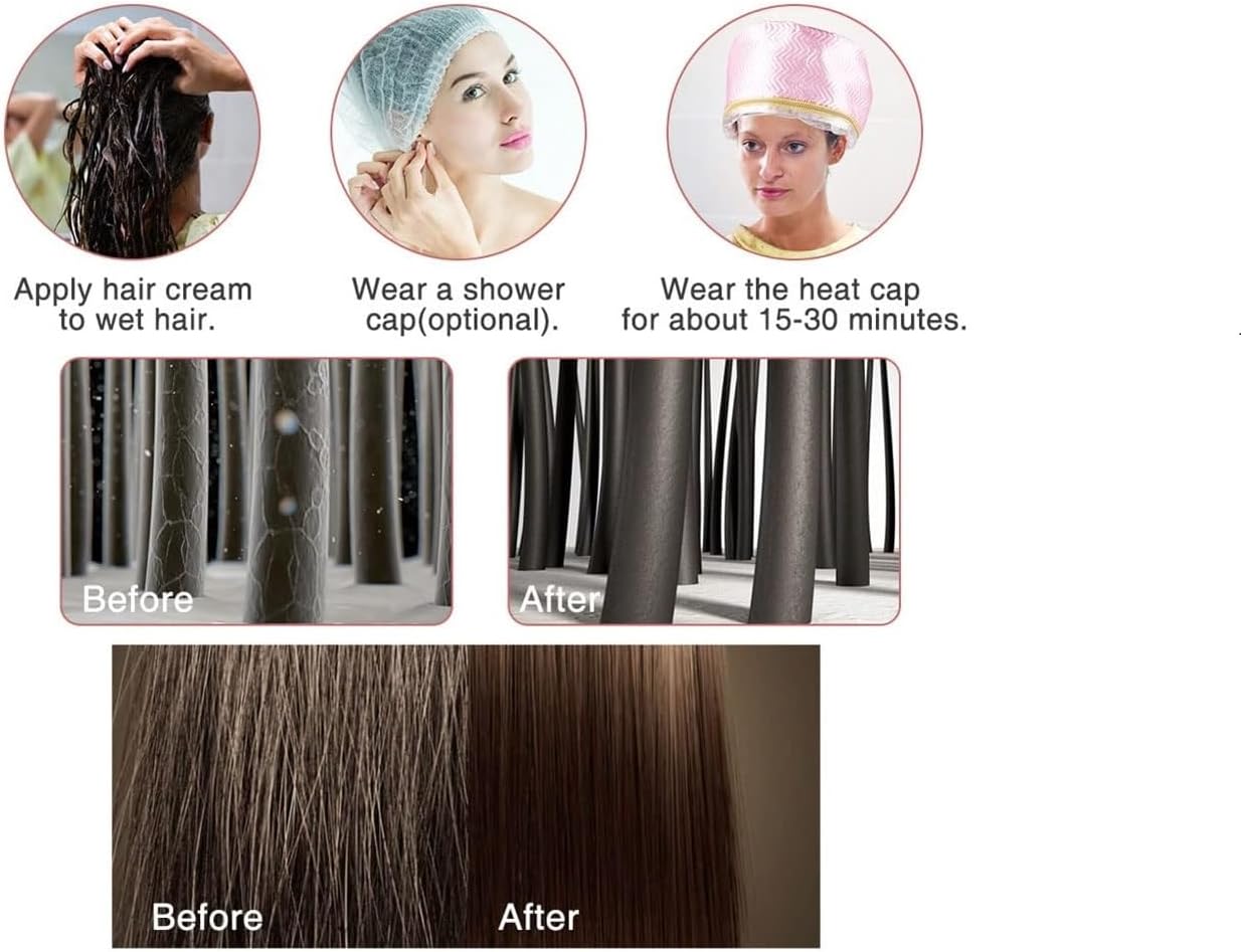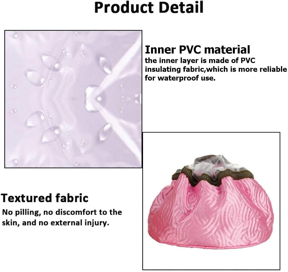 Ensure hair is dry or damp before putting on the shower cap, secure the shower cap tightly around the hairline to prevent water seepage, and avoid submerging the entire shower cap in water