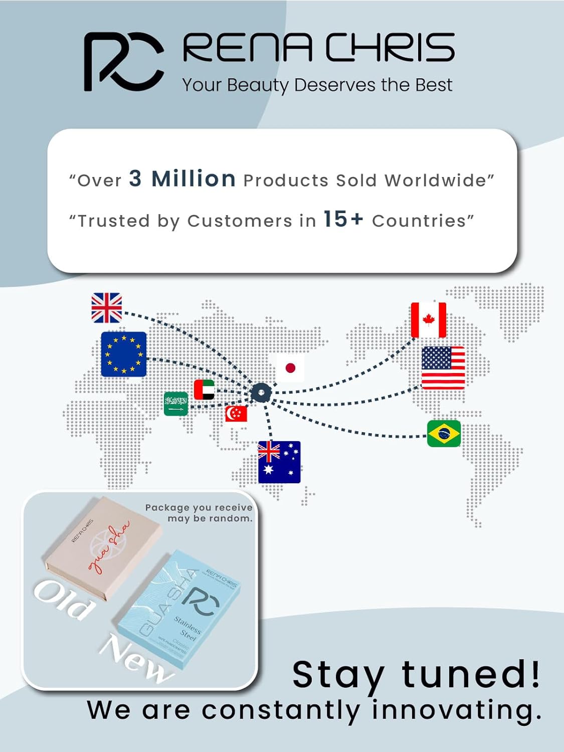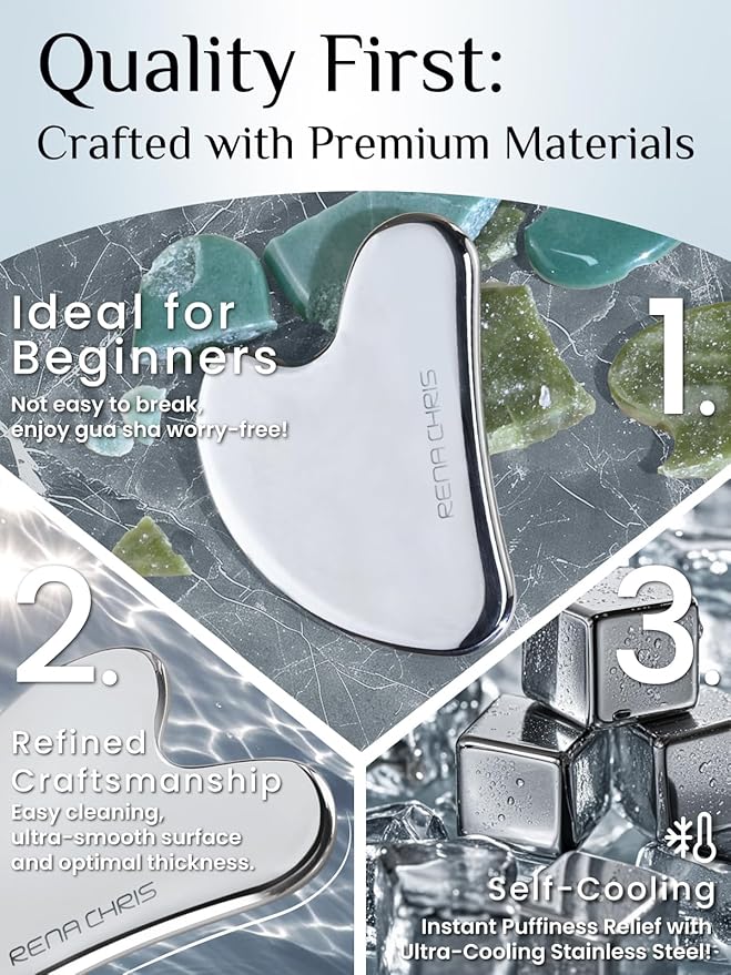 Rena Chris Gua Sha Facial Tools, Stainless Steel Guasha Tool for Acupuncture, Manual Massage Sticks for Jawline Sculpting and Puffiness Reducing, Gua Sha Scraping Massage Tool, Skin-Care Gift(Silver)